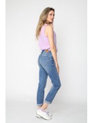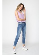 Deze highwaist broek valt hoog in de taille en heeft slanke rechte pijpen.